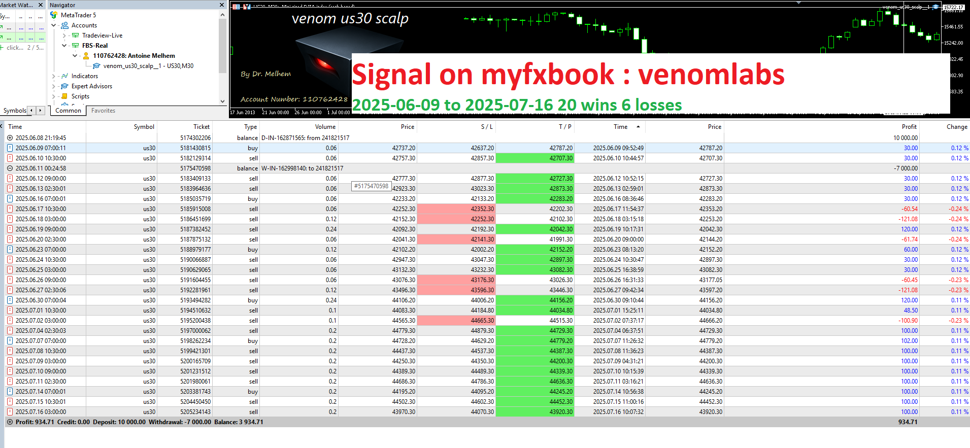 Venom us30 scalp Recovery TP was hit , signal on myfxvook