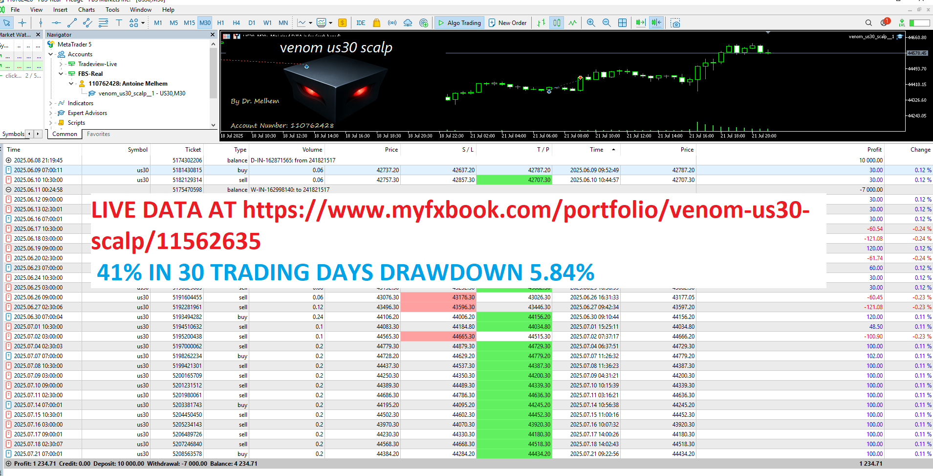 Check ‘VenomLabs’ on Myfxbook for signal history.