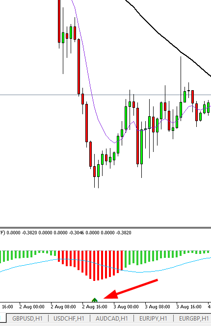 If you add one level Over the "0'' like +0.00015 and one Under the ''0'' like -0.00015 , this indicator give you the right time to open a Sell trade or a Buy Trade... That's it.
