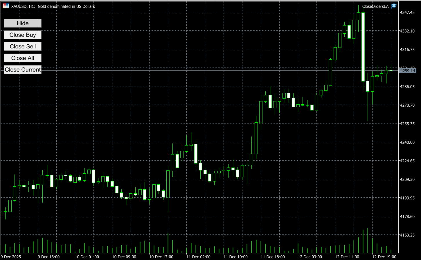 • Close orders for the current chart at market price, allowing focused control over specific trading instruments.