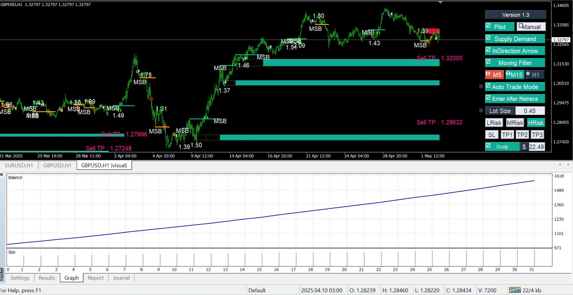 MSB Smart Bot è un Expert Advisor (EA) completamente automatizzato basato sulla potente logica del popolare indicatore Market Structure Breakout (MSB). Questo EA è progettato per generare profitti costanti grazie ai segnali affidabili del MSB. La modalità pilota automatico ti consente di avviare l’EA senza alcuna configurazione – inizierà a fare trading immediatamente.