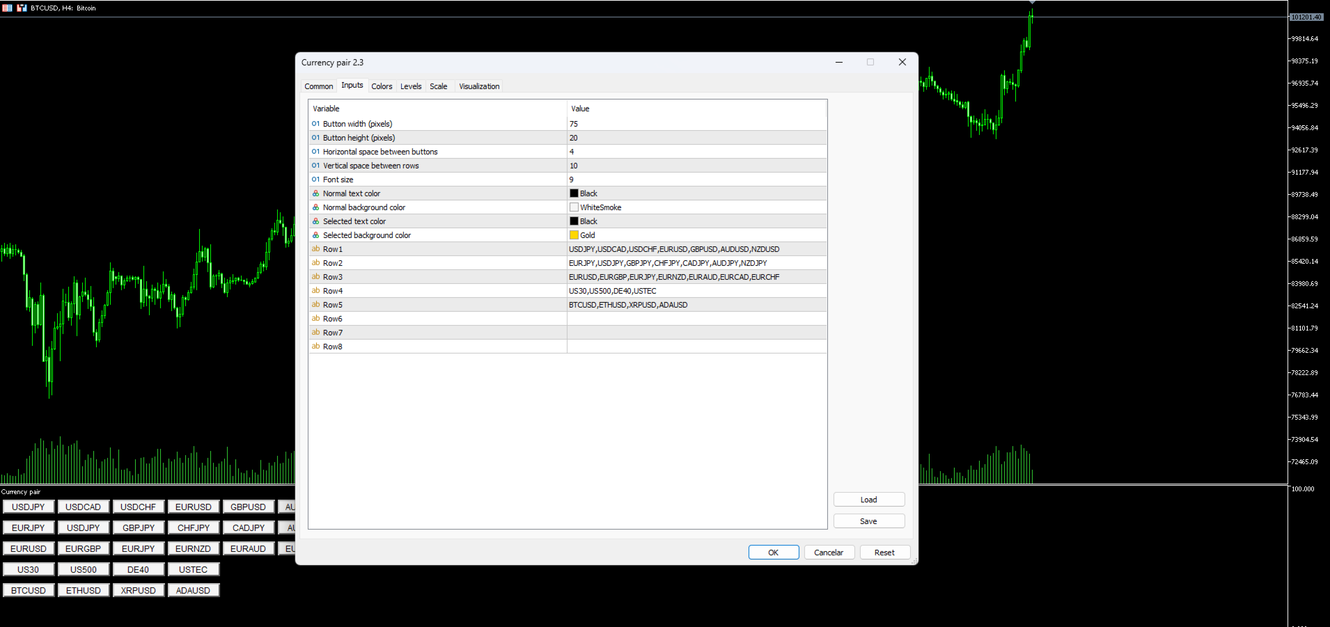 ✅ Fully Customizable Layout – Organize up to 8 rows of trading pairs, adjusting button size, spacing, and colors to fit your workflow.