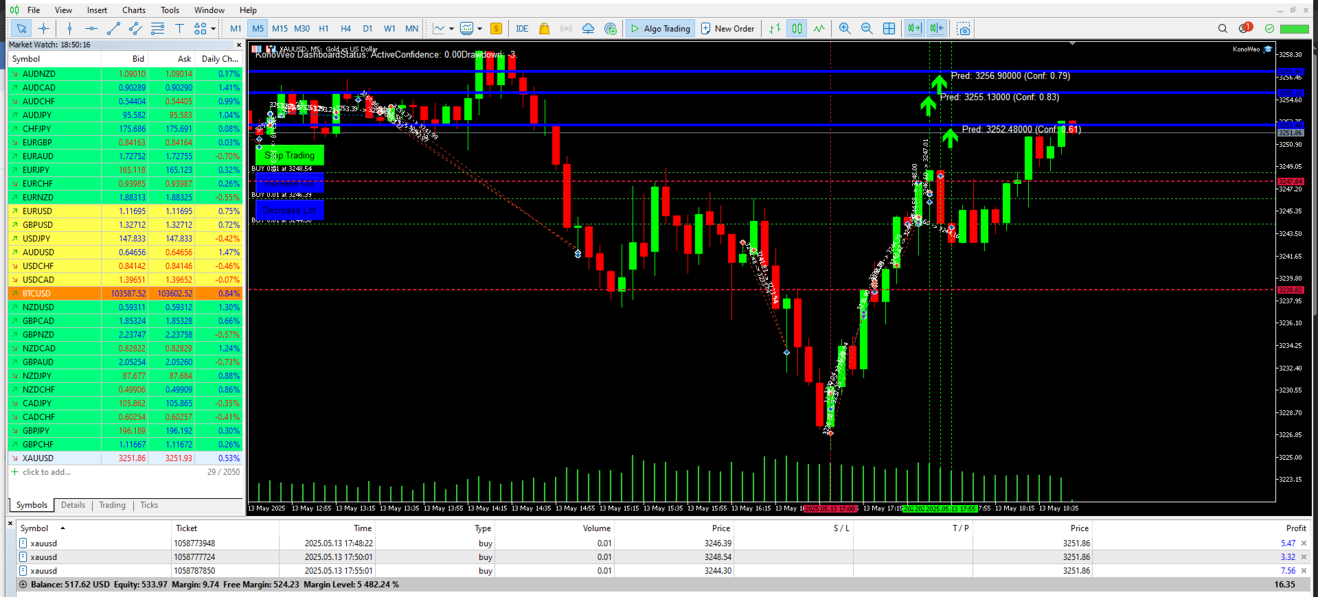 High quality new strategy prediction and so profitable mt5 expert advisors it works with all kinds of accounts all time frames all pairs but to hit fast profits run with 1 pair on chart you can run on many pairs many charts but prefer use one chart better start from $100 account it works with any account no minimum you also can adjust lot and tp and sl .. it focus on new candle prediction on secret calculation strategy