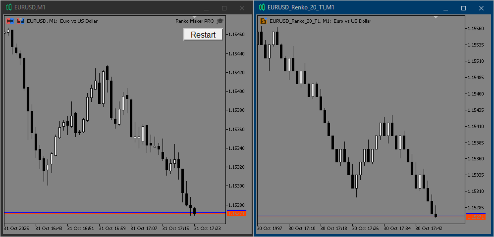 Демо версия строит ренко бары только на основе EURUSD из 1000 последних минутных баров.