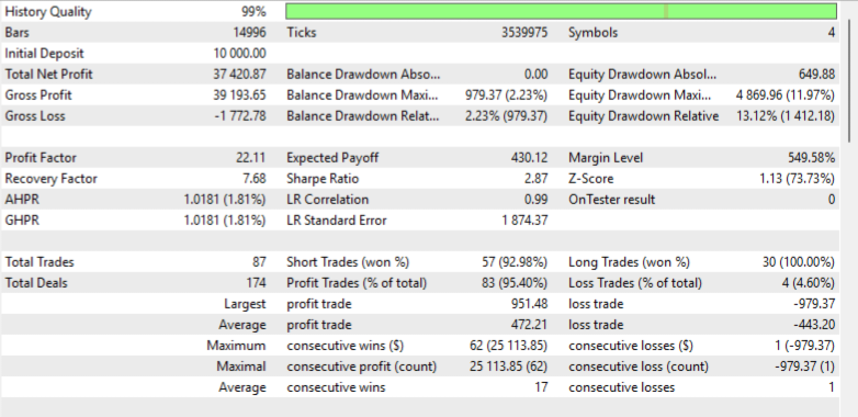 - Trade Symbols: AUDNZD, AUDCAD,EURUSD,EURGBP. These symbols are traded simultaneously.