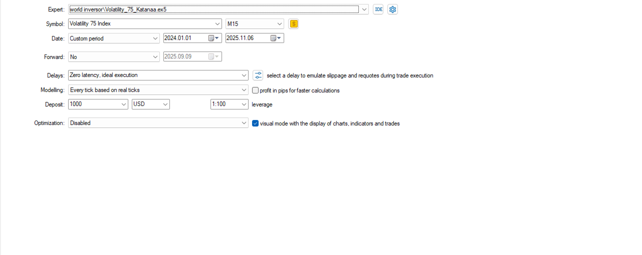 Rationale for the Parameters: The wide Stop Loss and Take Profit values do not represent excessive risk, but rather a necessary adaptation to the unique characteristics of the V75, where price movements can be extremely rapid and large. This configuration allows you to: