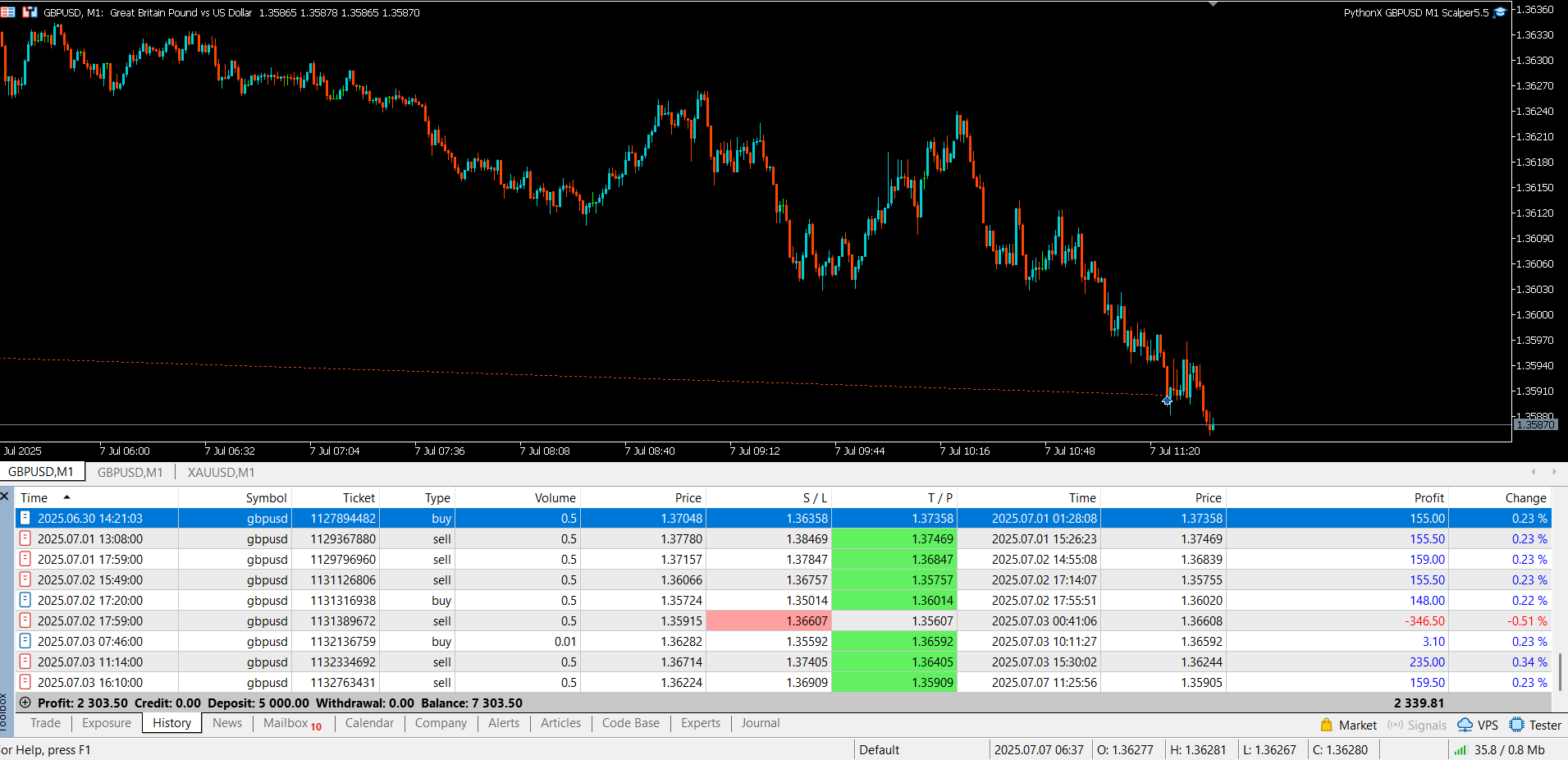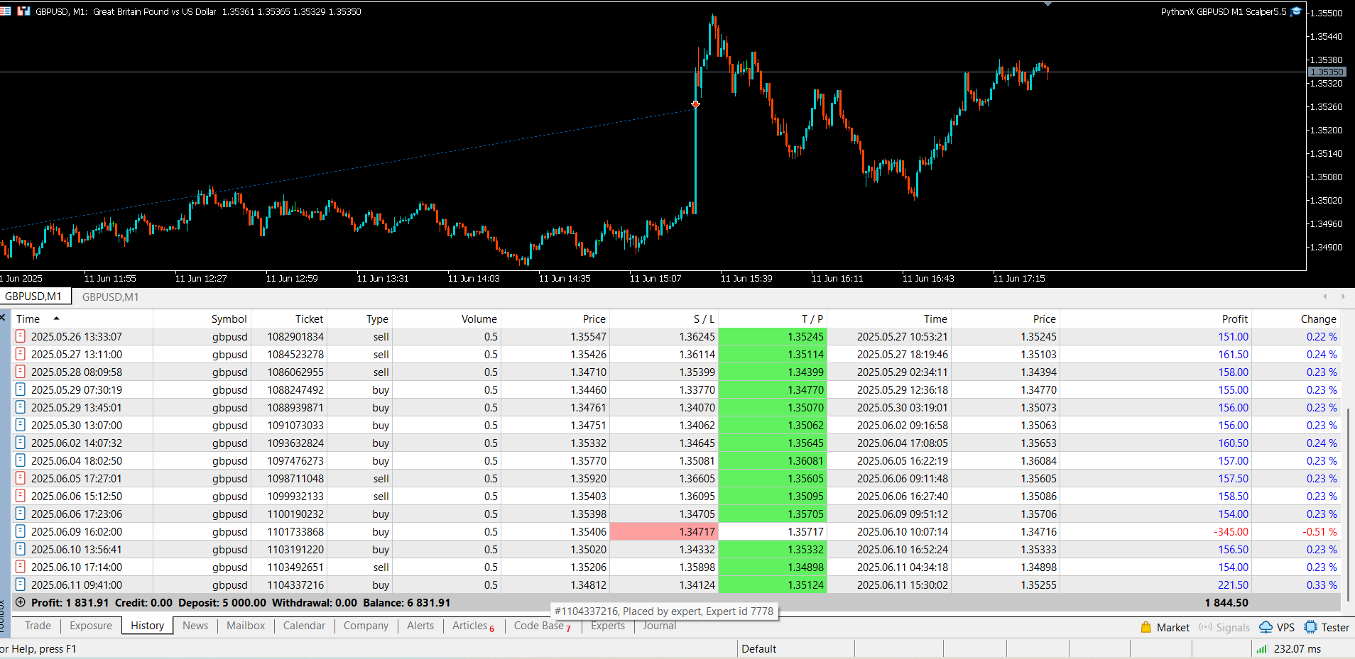 PythonX M1 Scalper GBPUSD