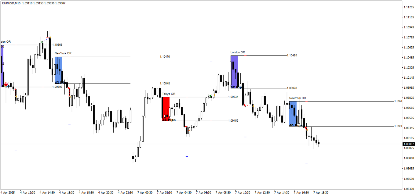 Rilevamento breakout basato sulla sessione: Traccia automaticamente Londra (07:00-08:00 GMT), New York (13:00-14:00 GMT), Tokyo (00:00-01:00 GMT) e mezzanotte ORB intervalli per configurazioni di breakout ottimali.