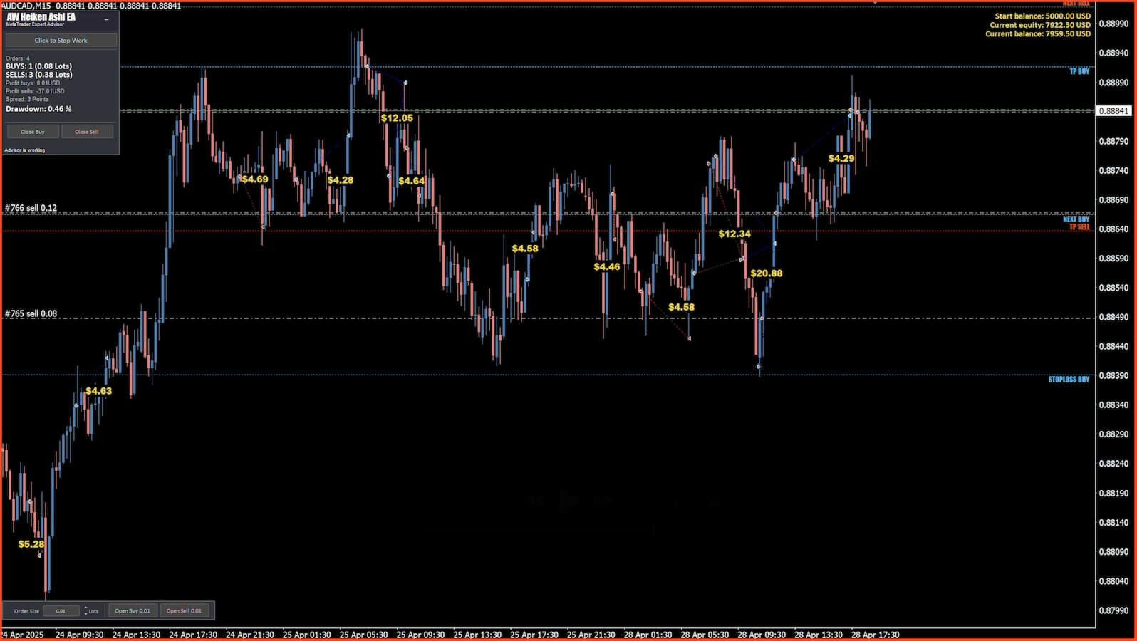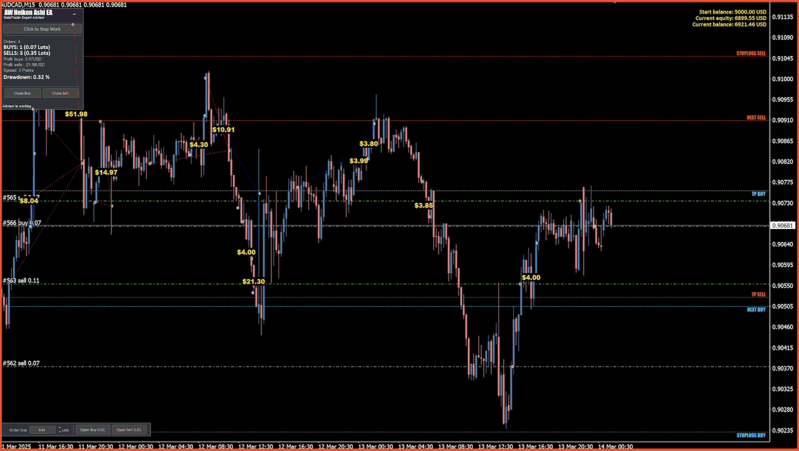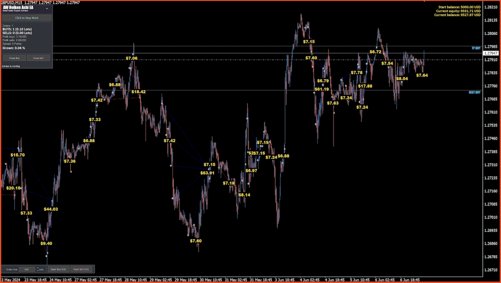 Consulente automatico multifunzionale, che opera sui segnali dell'indicatore di tendenza AW Heiken Ashi. Con impostazioni avanzate e flessibili per la gestione di rischi, volumi, logica di ingresso e supporto delle posizioni. Se necessario, utilizza la media, livelli di TakeProfit e StopLoss regolabili, funzione di sovrapposizione integrata e passaggio dinamico tra gli ordini.