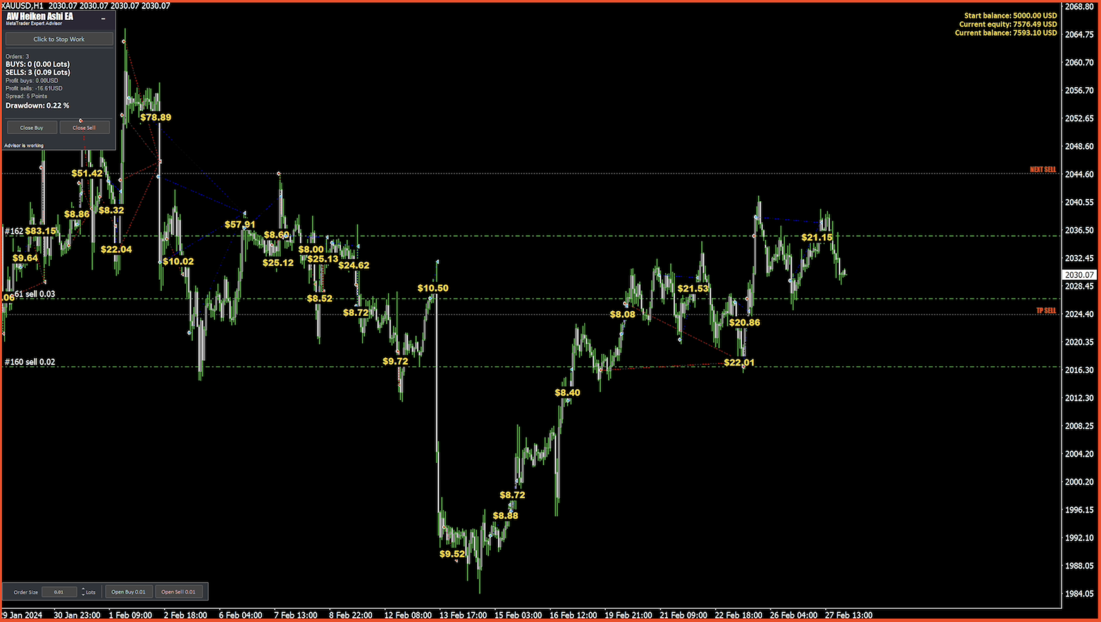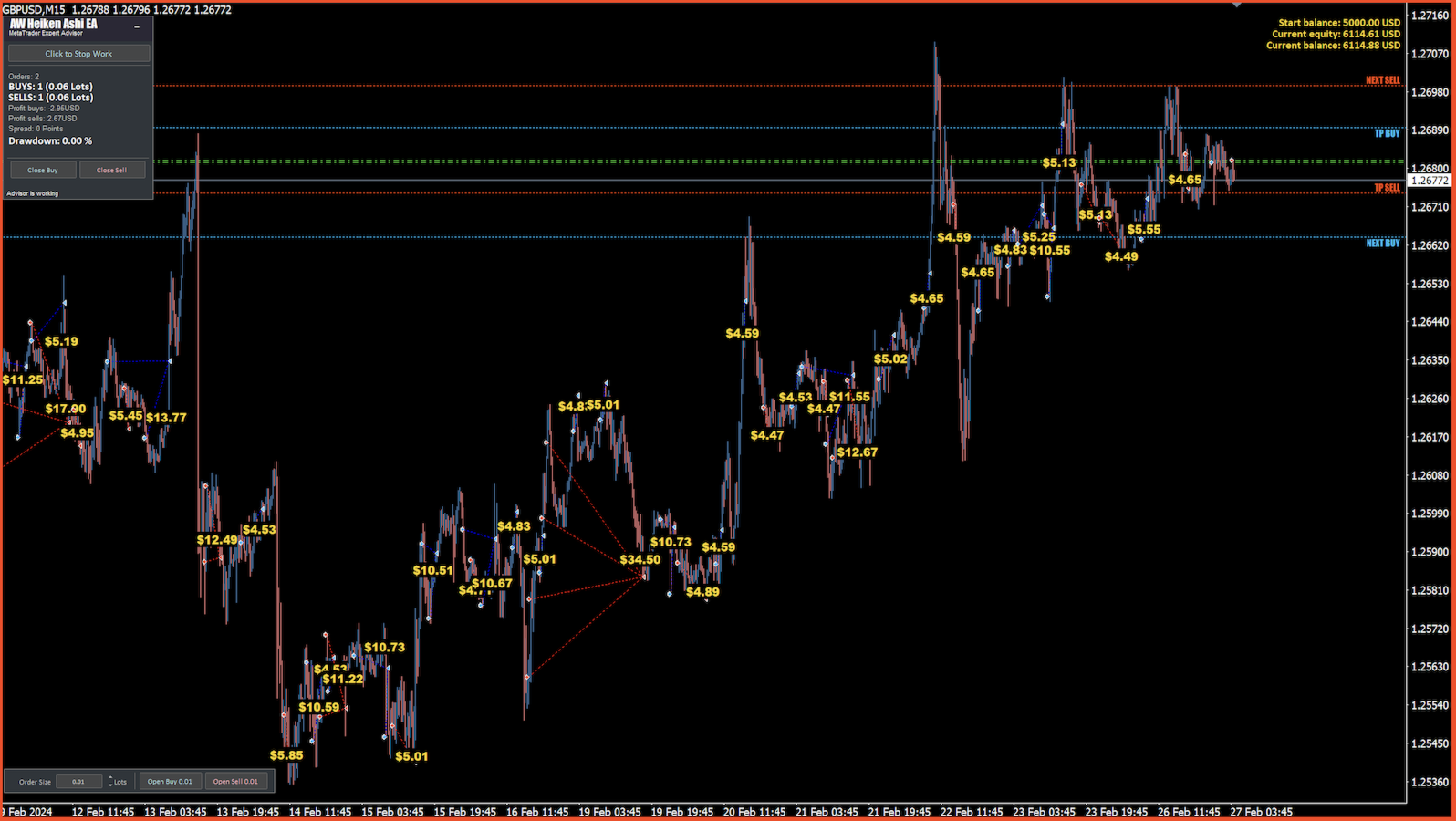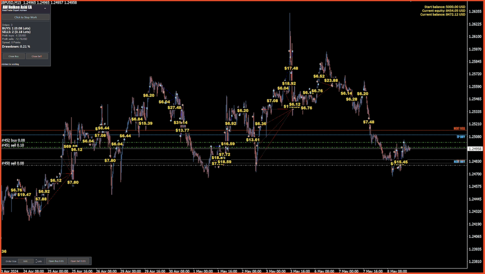 Consulente automatico multifunzionale, che opera sui segnali dell'indicatore di tendenza AW Heiken Ashi. Con impostazioni avanzate e flessibili per la gestione di rischi, volumi, logica di ingresso e supporto delle posizioni. Se necessario, utilizza la media, livelli di TakeProfit e StopLoss regolabili, funzione di sovrapposizione integrata e passaggio dinamico tra gli ordini.