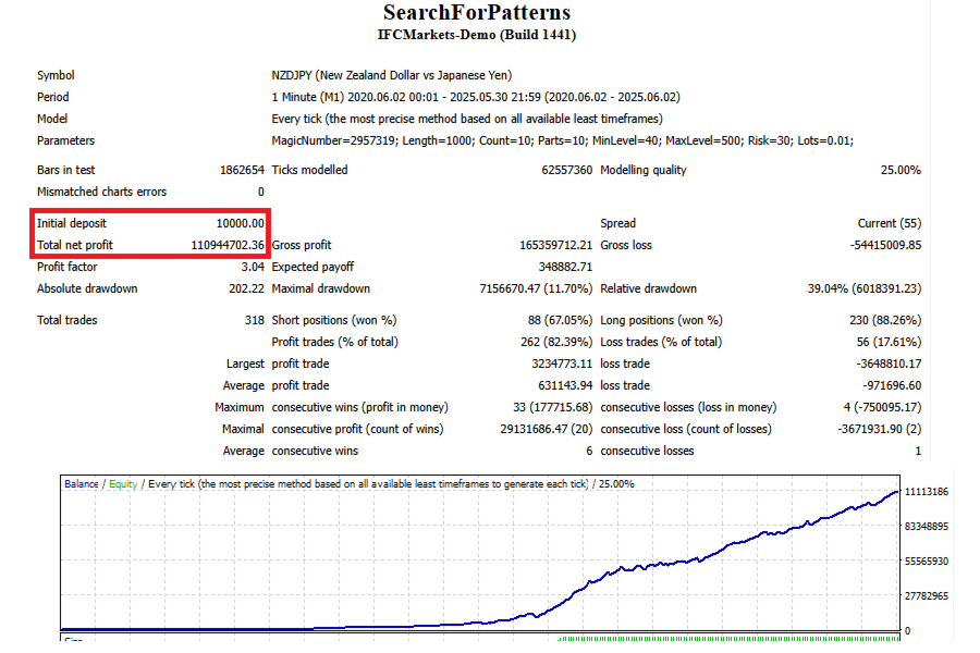 SearchForPatterns - trading robot for the NZDJPY currency pair on the M1 timeframe. The robot finds patterns in quotes and predicts the next price.