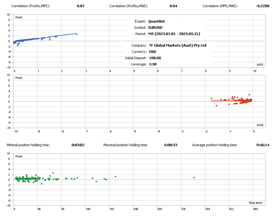 QuantBot is an Expert Advisor that does not utilize a grid or martingale strategy, and does not confine itself to any particular trading asset or timeframe; it excels by executing one precise position at a time. Trades are finalized once the target profit is reached or a predetermined loss is sustained. Furthermore, trades can be managed using trailing stops at a specified level of the breakeven point.