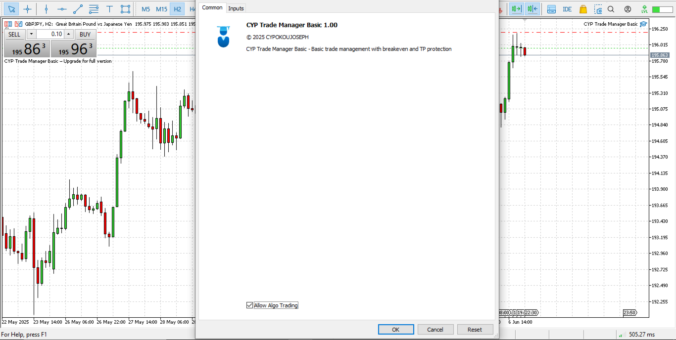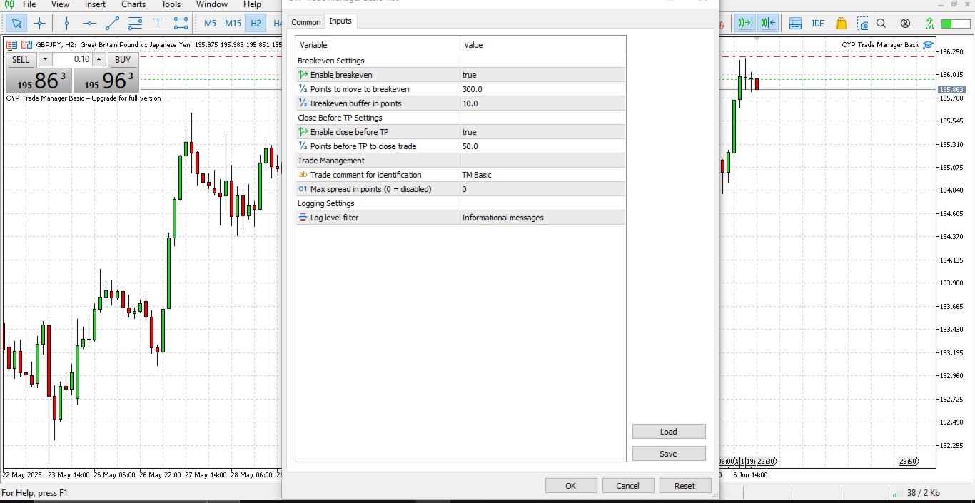 CYP Trade Manager Basic is a sophisticated trade management Expert Advisor designed to protect your trading capital and maximize profit potential through intelligent position management. Perfect for both beginner and experienced traders who want to automate their trade management without the complexity.