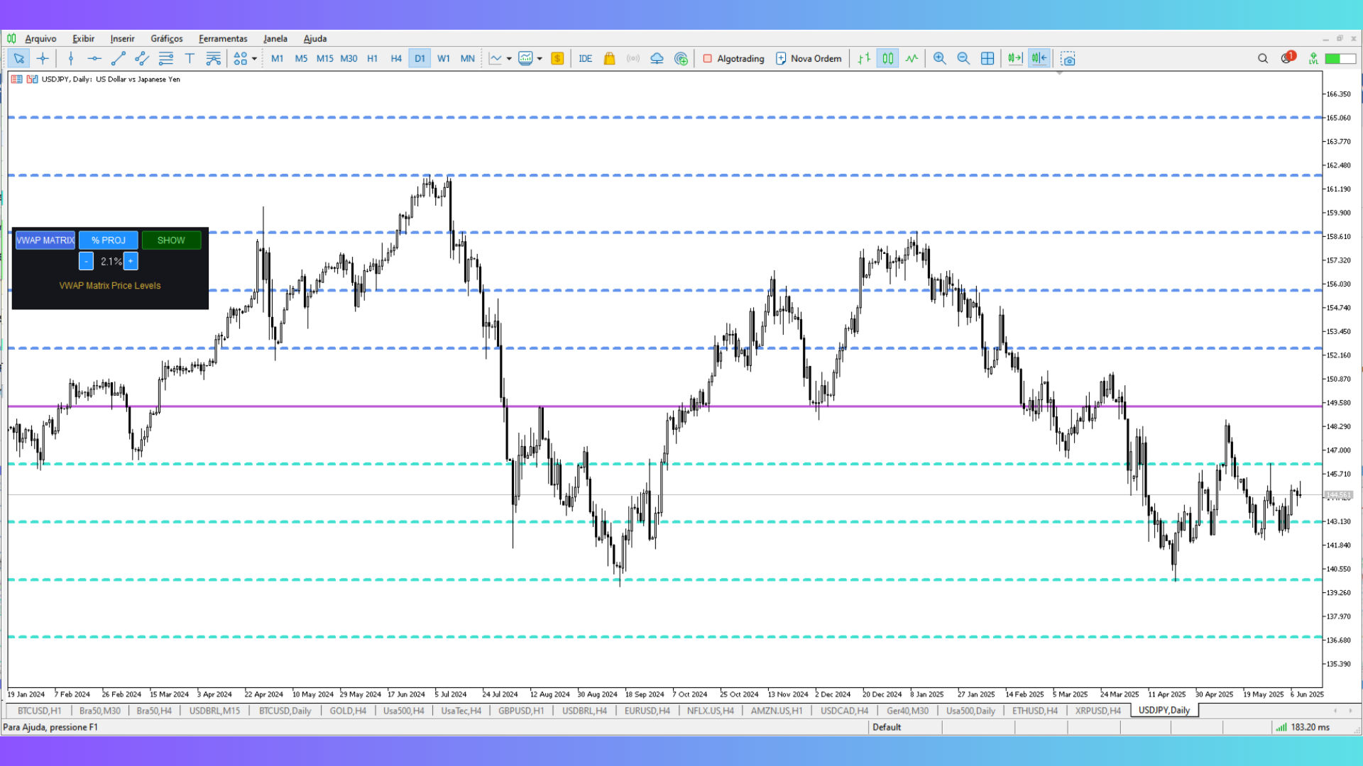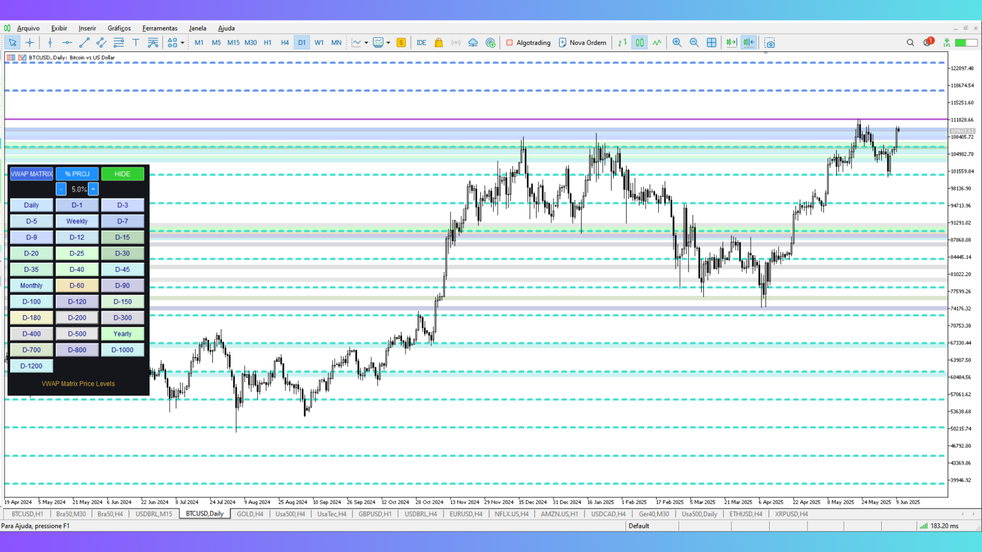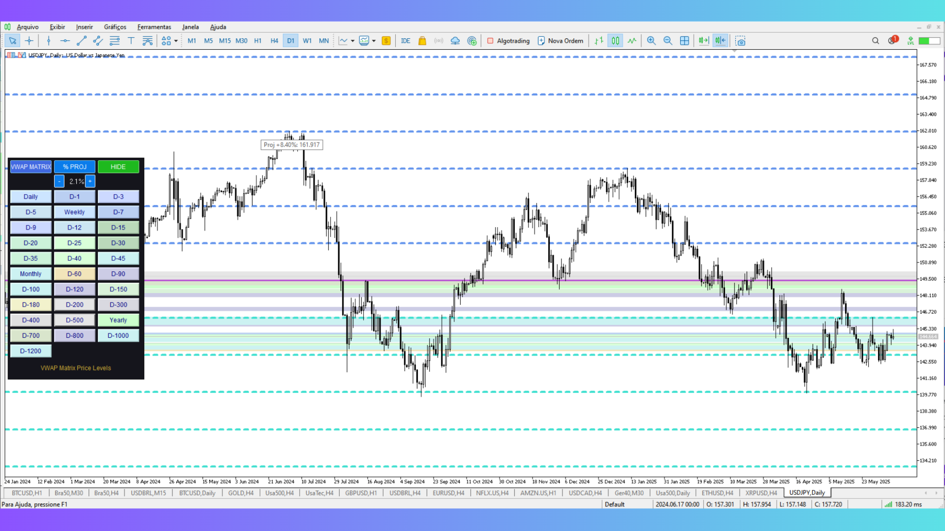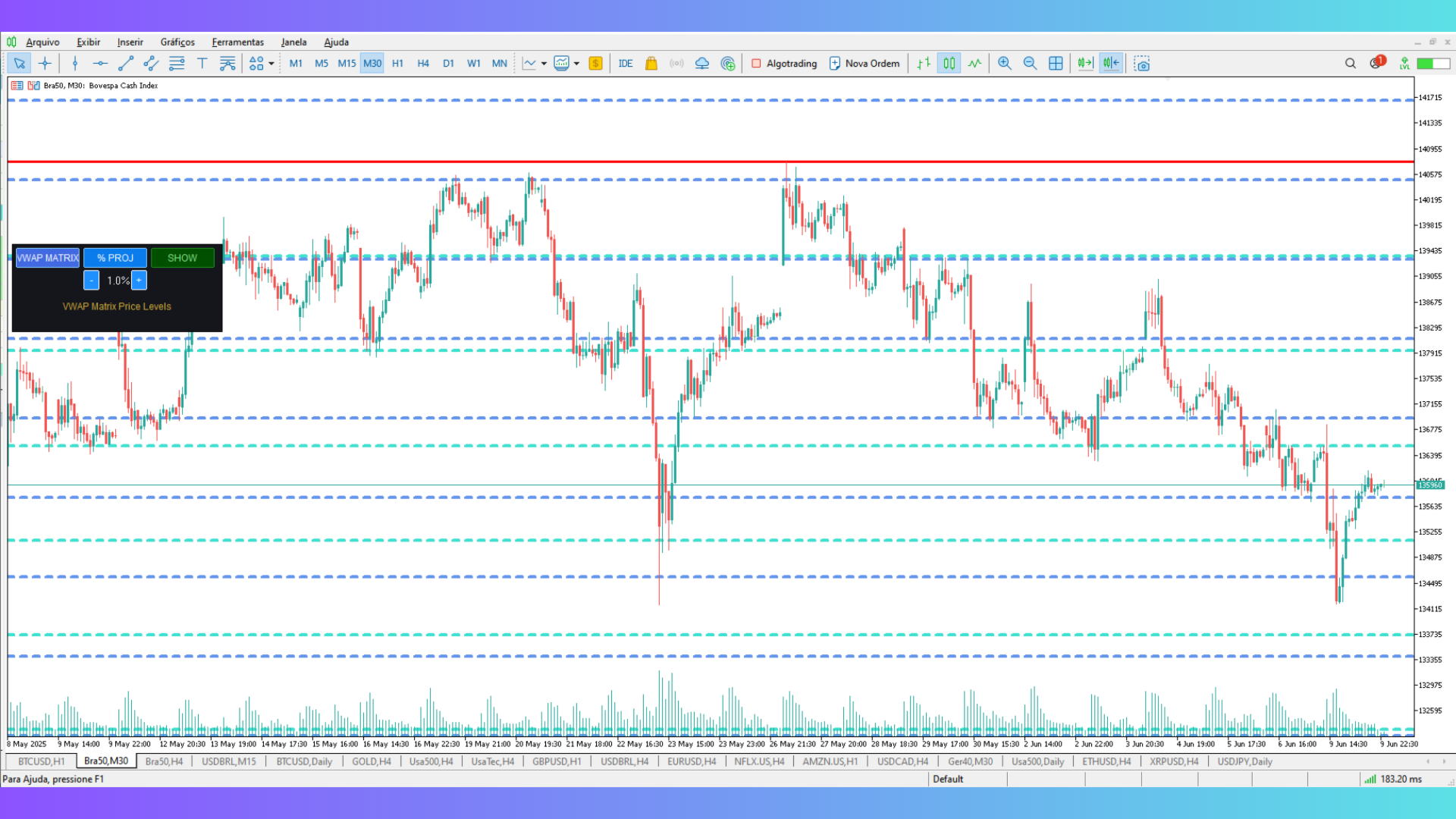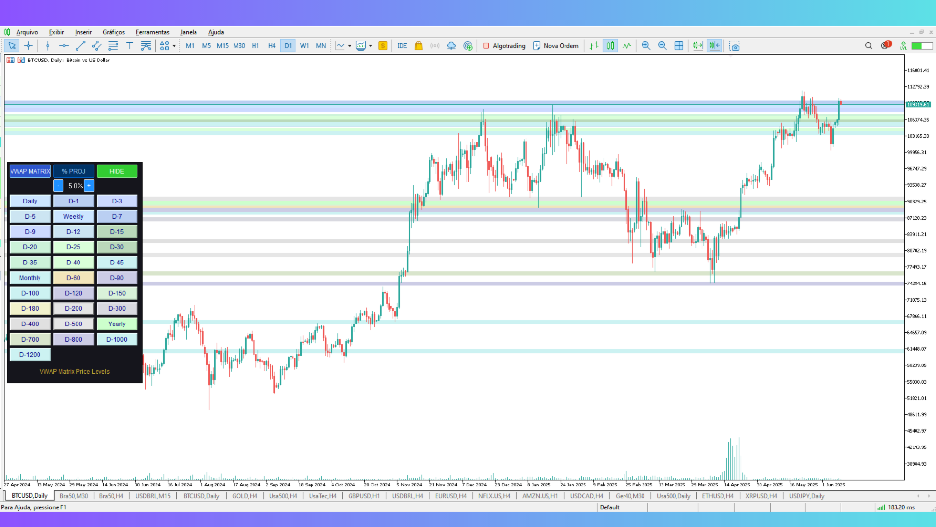 The VWAP Matrix Price Levels Pro is an elite indicator for MetaTrader 5, designed for traders who demand precision and a superior market view. Elevate your technical analysis by combining, in a single tool, the institutional power of VWAP (Volume Weighted Average Price) with an innovative price level projection system.