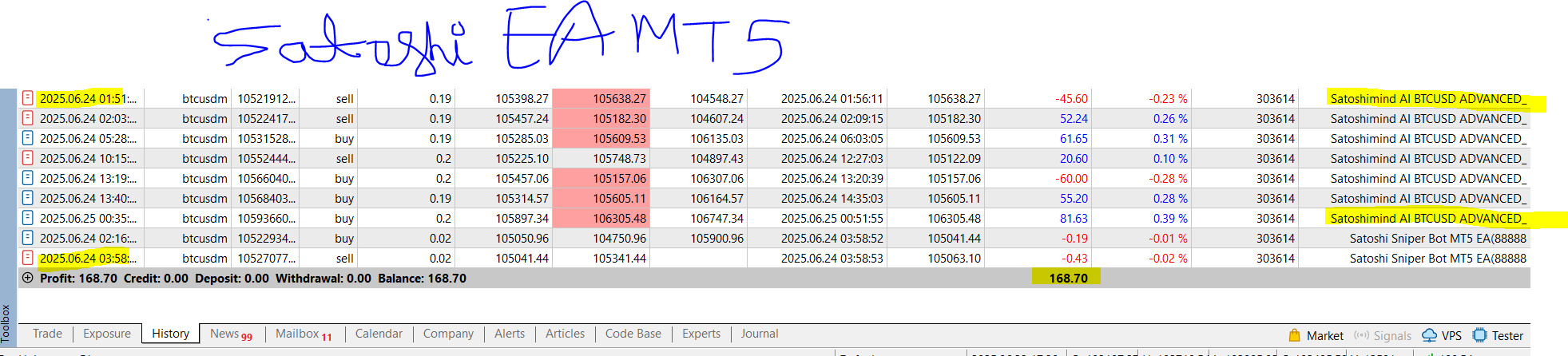 Update_4JULY 2025_ Message me for Installation of Advanced Satoshimind AI Bitcoin MT5_EA after you buy. I will setup correctly to trade BTCUSD Pair.
