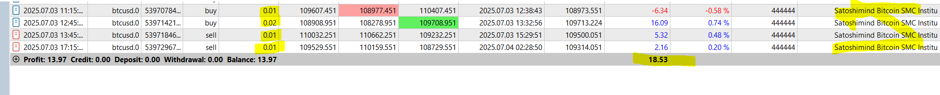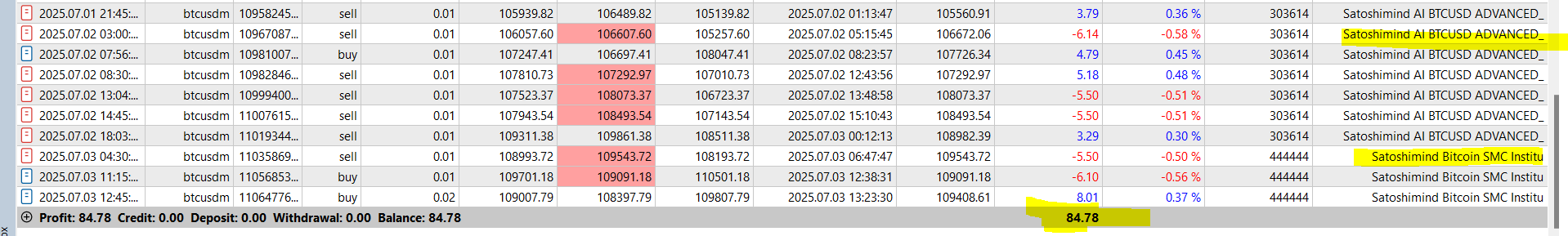 Result on Bitcoin of last 2 days_From 2nd July to 3rd July 2025_ADVANCED SATOSHIMIND AI MT5
