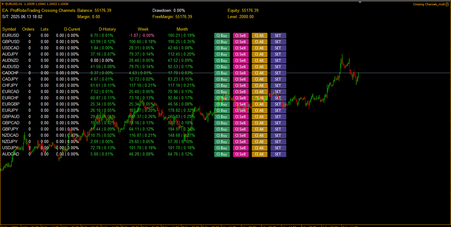 You can also purchase our versatile ProfRoboTrading Channel EA, in wich you can seamlessly integrate various channel, arrow, and reversal indicators. It offers the flexibility to use all popular channel trading strategies, while also providing powerful tools to customize your trading conditions and risk management system.