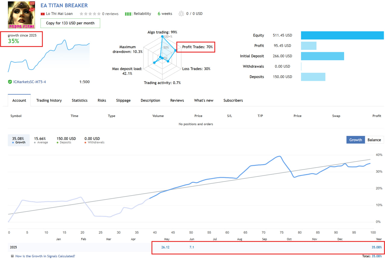 Even with a small account, Titan Breaker runs safely — letting you sleep peacefully at night.