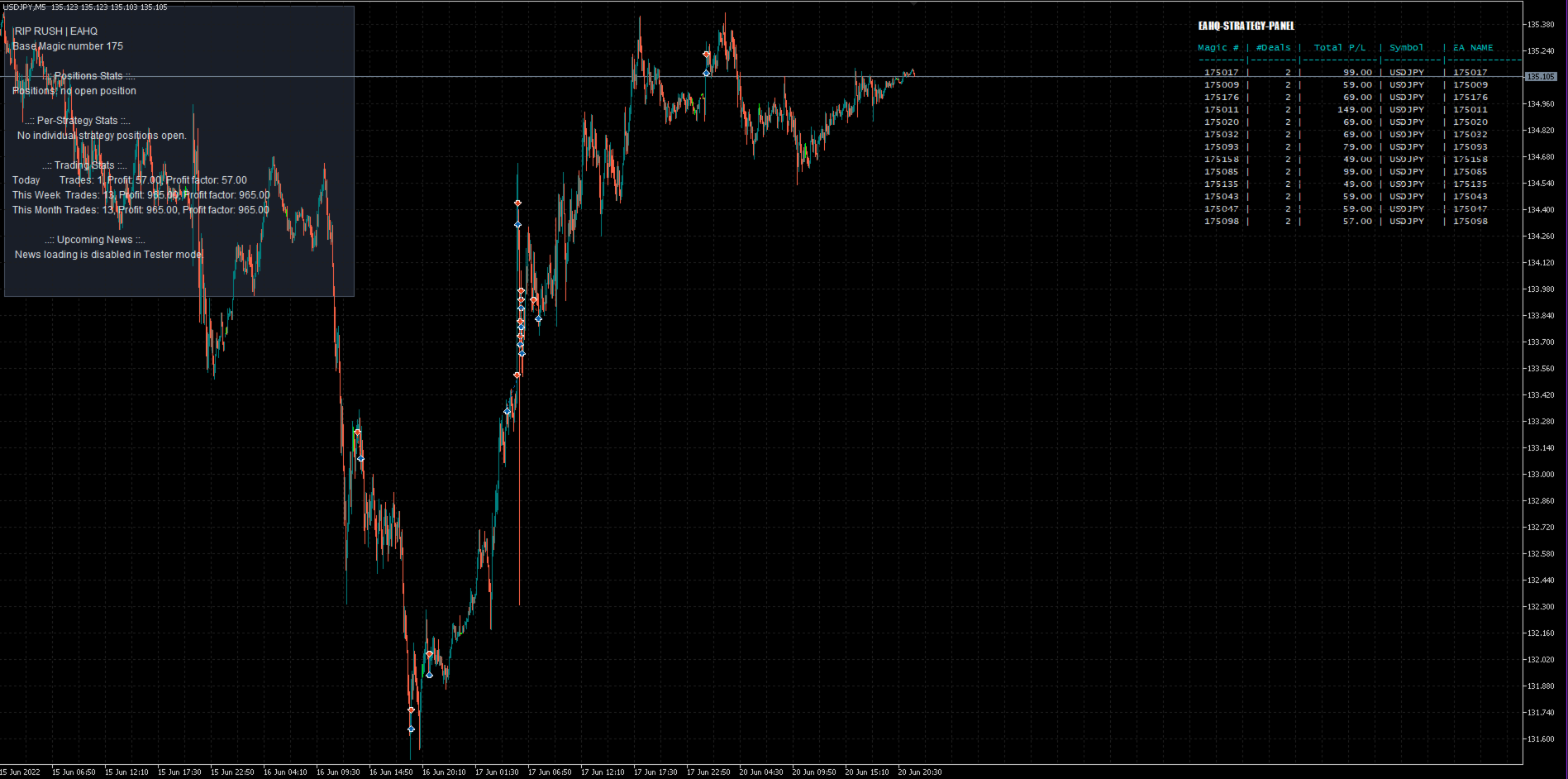 Unleash the power of Rip Rush, your ultimate trading solution for the USDJPY M5 chart. With over 198 distinct strategies and a remarkably high win rate, Rip Rush is engineered for performance. Its intelligent, indicator-based stop levels adapt to the market in real-time, protecting your capital while maximizing gains. If you're serious about dominating the USDJPY, Rip Rush is your edge.