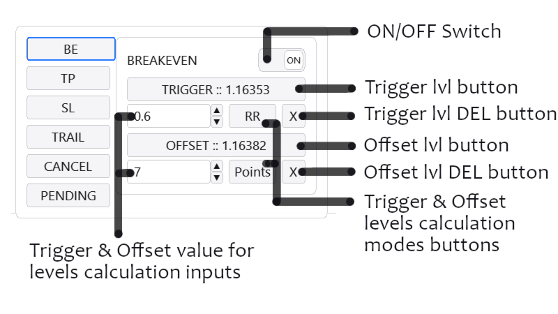 - Breakeven and trailing stop-loss and take-profit functions