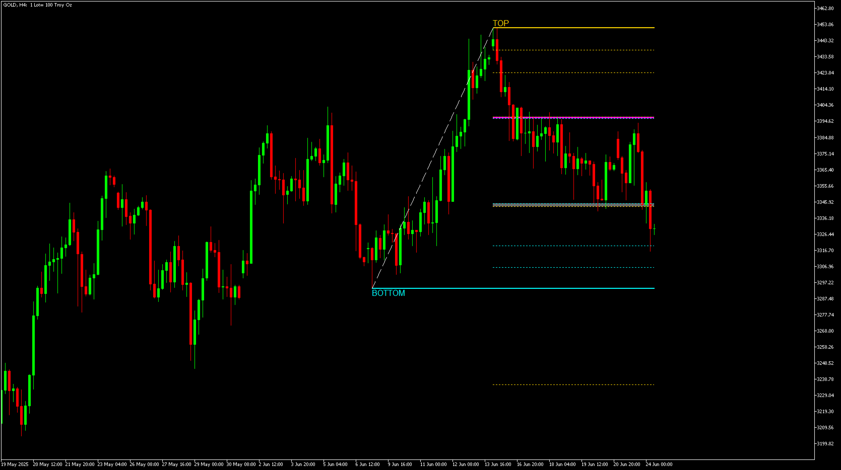 Definisci un punto alto e un punto basso, e l’indicatore calcola automaticamente: