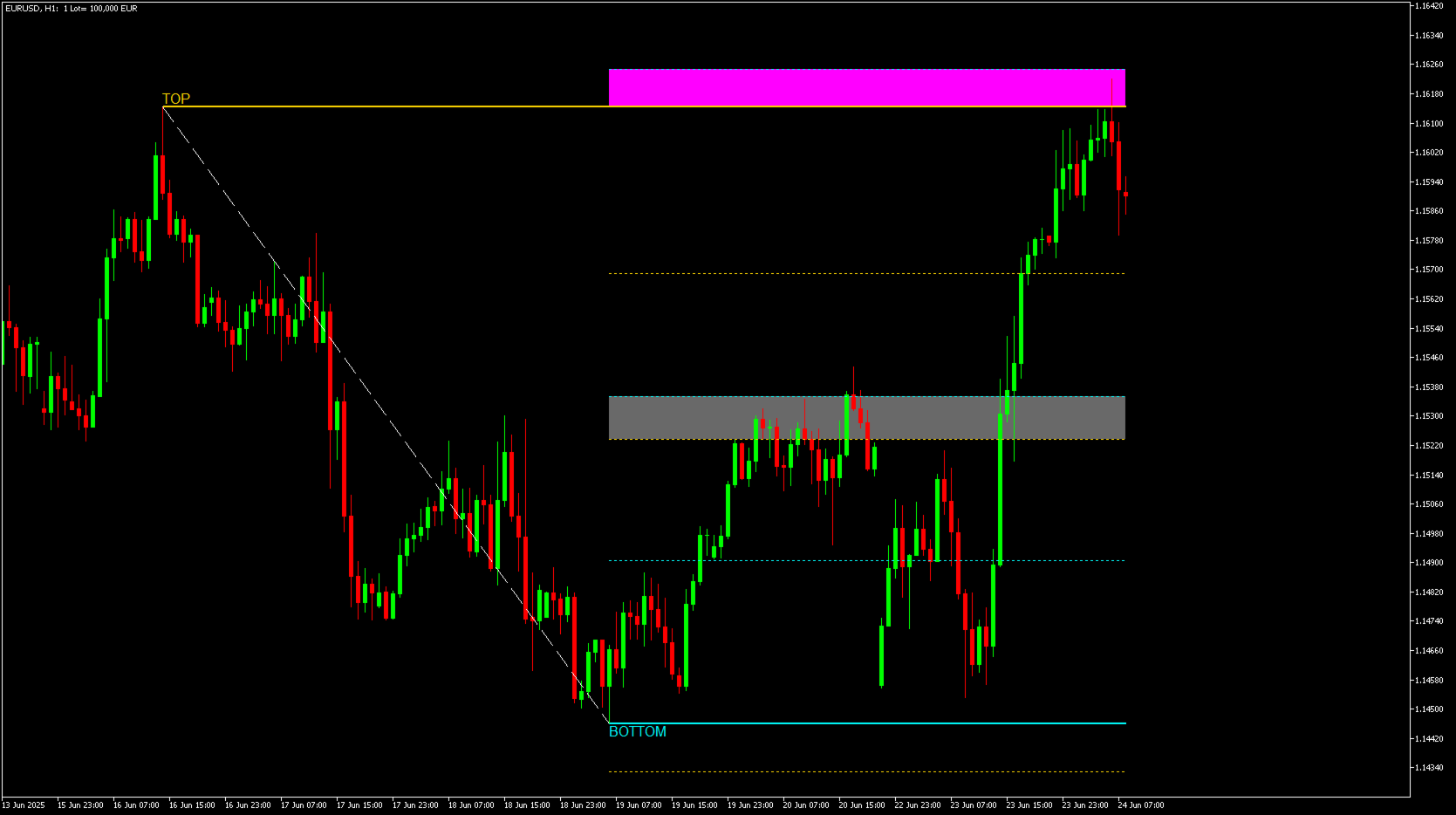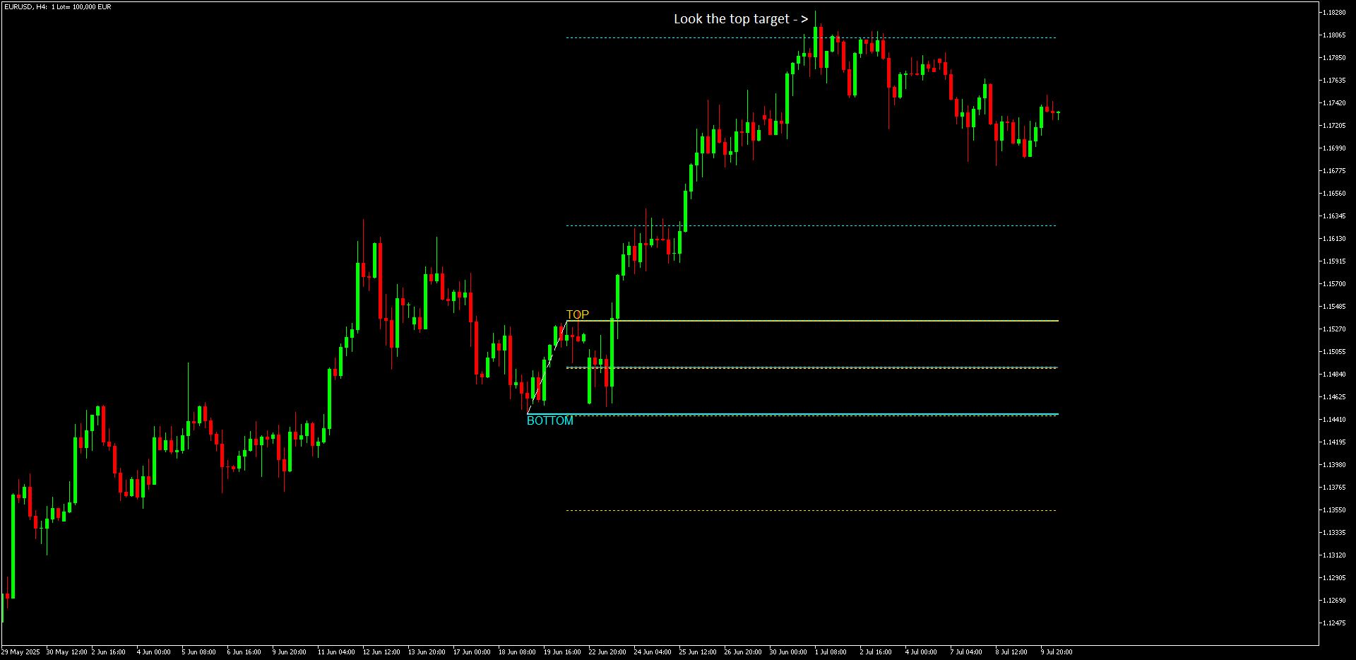 Quando carichi l’indicatore, vedrai due linee: Top e Bottom.