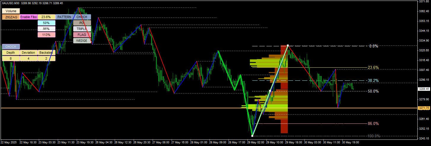 Whether you're tracking CHOCH shifts, pinpointing POIs, or analyzing TRIPLE tops and FLAG formations, this indicator offers the depth and flexibility to adapt to any trading strategy. CORE FEATURES Smart Volume Profile