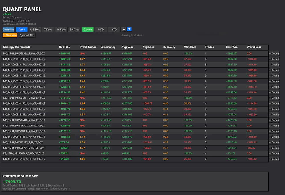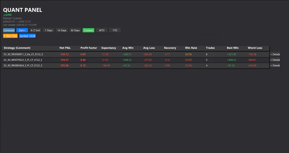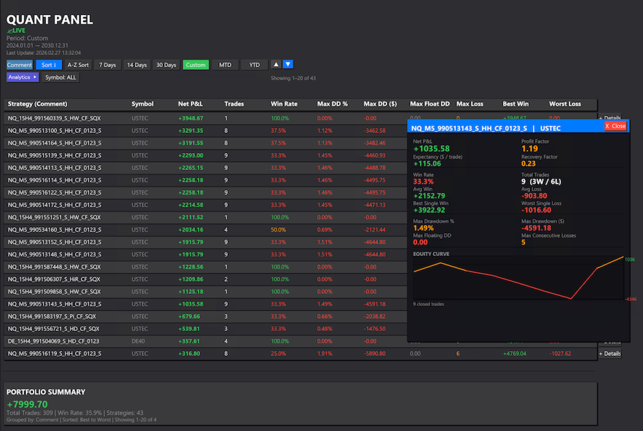 Stop juggling multiple charts or external tools to monitor your algorithmic strategies! Quant Panel Pro delivers institutional-grade portfolio monitoring in one sleek, professional interface.