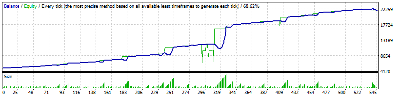 EA detects trend pullbacks and opens an initial position.