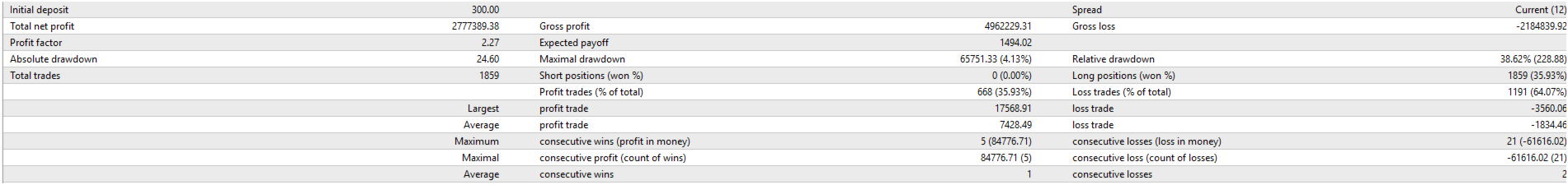 Stop Loss & Take Profit – Customizable (default SL: 300, TP: 1500)