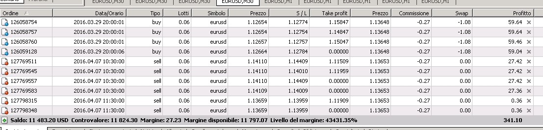 Actually is quite simple: simply you should open overall 8 charts of EURUSD pair (4 charts for M30 time frame and 4 charts for H1 time frame) so you can start to load each set file on the charts; as you can see from the setfiles we have 4 strategies for M30 time frame ("scalper", "early expansion", "advanced expansion" and "extreme expansion") and 4 similar strategies on H1 to work in multiamplitude and multidimensional fashion and bring in our favor the complex and multifaceted market behaviour.