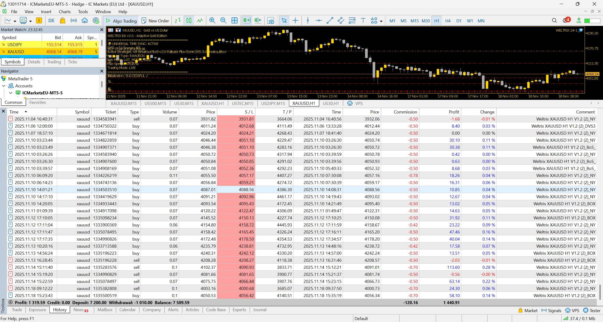 Chciałbym podzielić się z Wami moimi wynikami z Veltrix. Używam go od ponad dwóch miesięcy i rezultaty są spektakularne. Są zgodne z opisem produktu i wynikami testów wstecznych. Guilherme oferuje również znakomitą obsługę – naprawdę wyjątkową. Jestem bardzo zadowolony z wydajności robota; minęły już dwa miesiące bez żadnych problemów. Chciałbym podzielić się kilkoma zrzutami ekranu z moimi wynikami.