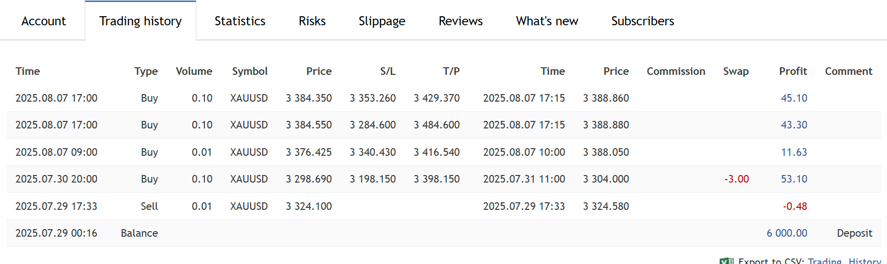 Trading Results: