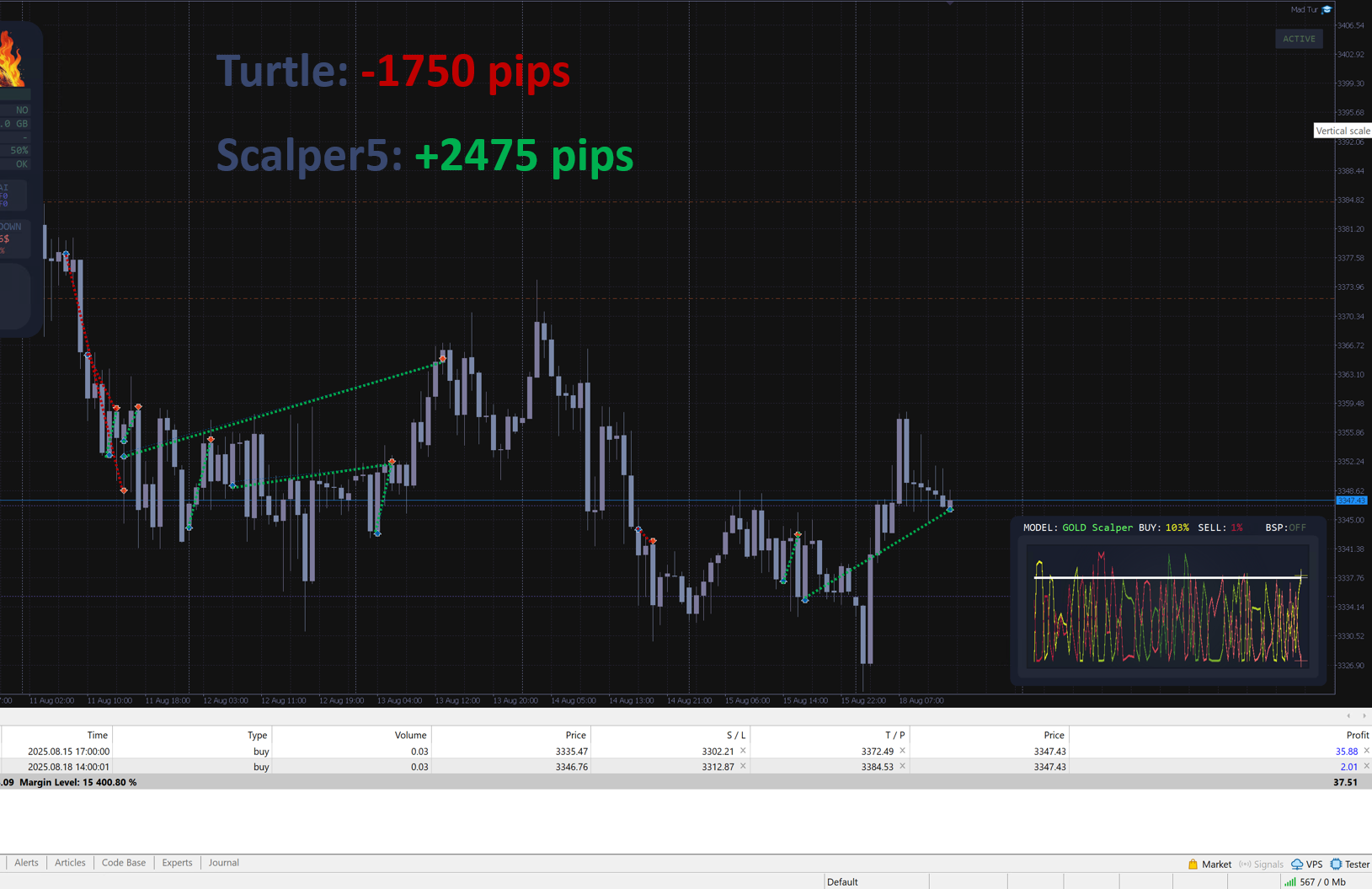(The signal was not artificially boosted beforehand)I have the model running: Turtle and Scalper PRO;