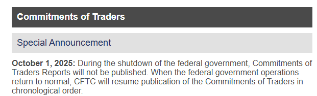 Dear users, CFTC reports are temporarily unavailable due to the shutdown: