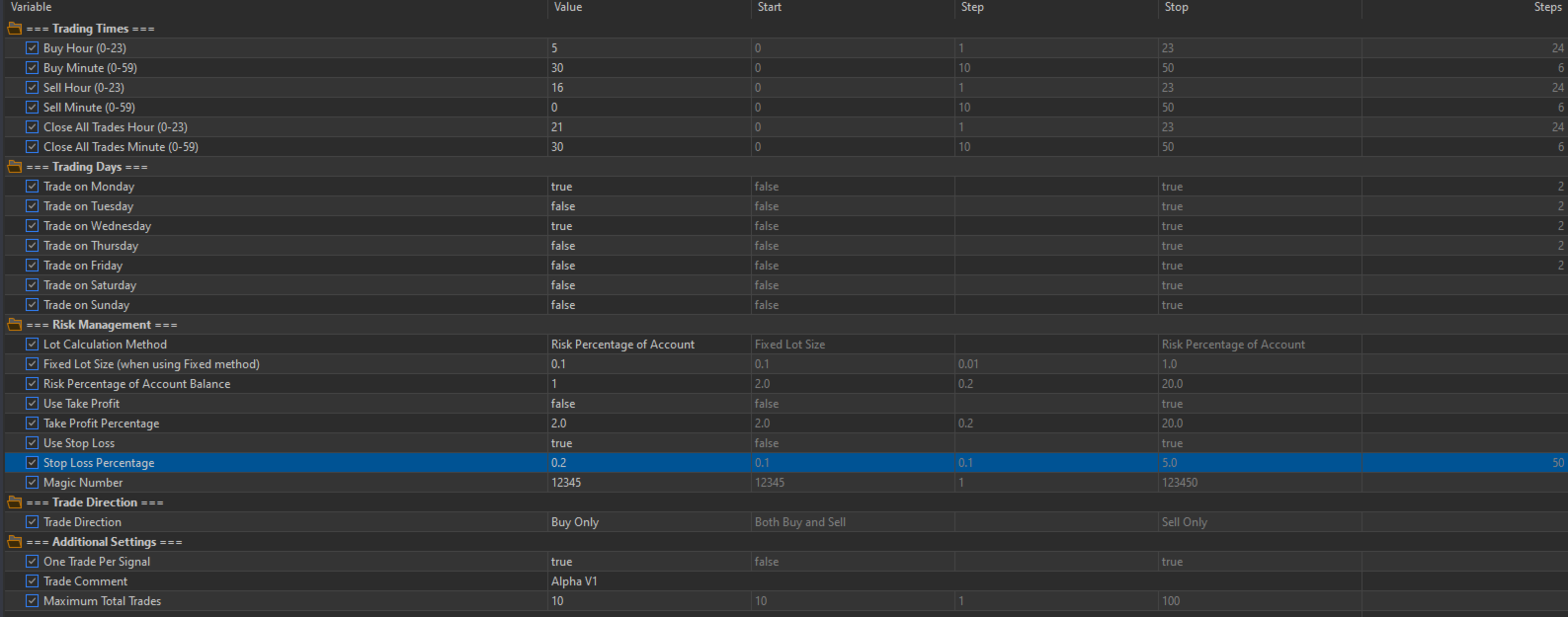 Fully Customizable Schedule: You decide which days of the week to trade. Target specific market sessions or known periods of volatility by enabling trading on Mondays, Wednesdays, or any day you choose.