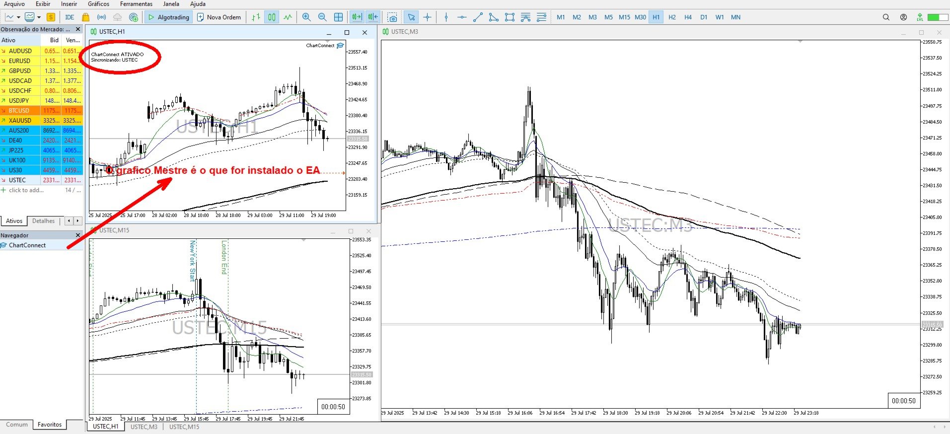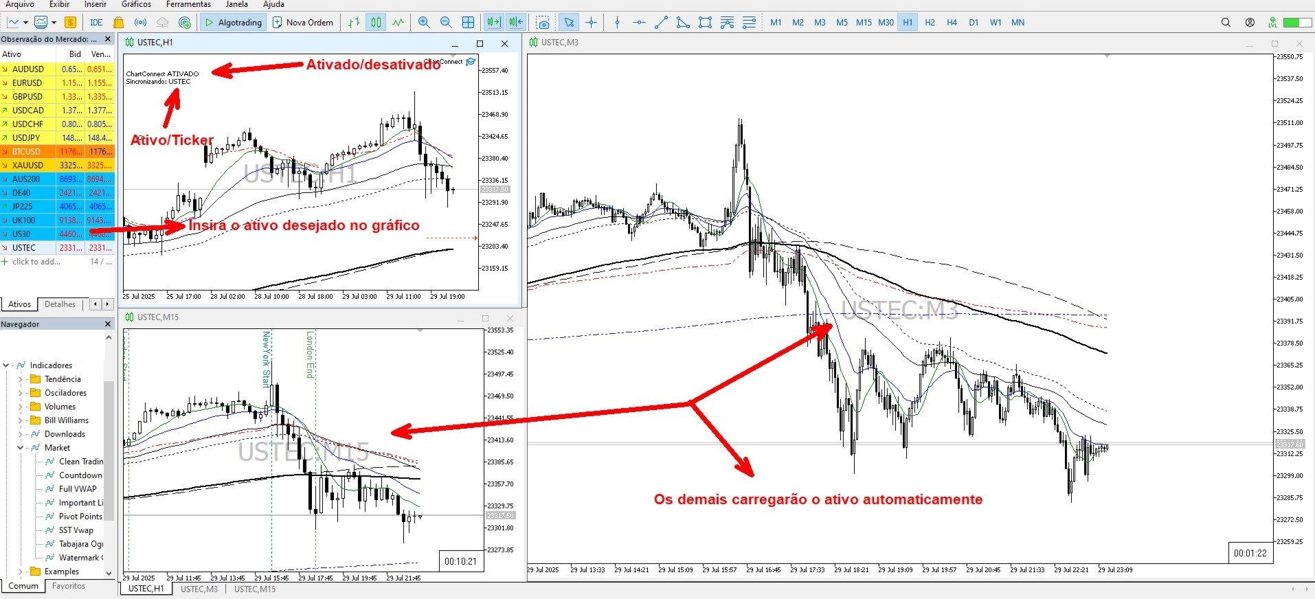 ChartConnect is a lightweight and efficient tool developed to automatically synchronize the symbol (ticker) across all open charts in MetaTrader 5.