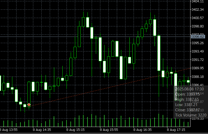 The author hid the details of the deals for 2025/08/08. On this day, I had a deal to sell 3381.72 at 14:30 utc3 (like the author's signal) on 3 brokers. The entry was terrible and erroneous, the price flew up almost immediately, the DD of the entire balance reached 35% (the Advisor sets stop losses at 50% of the entire balance). But at 17:32 utc3, according to the signal, the author received a small profit and closed the deal with a stop loss.
