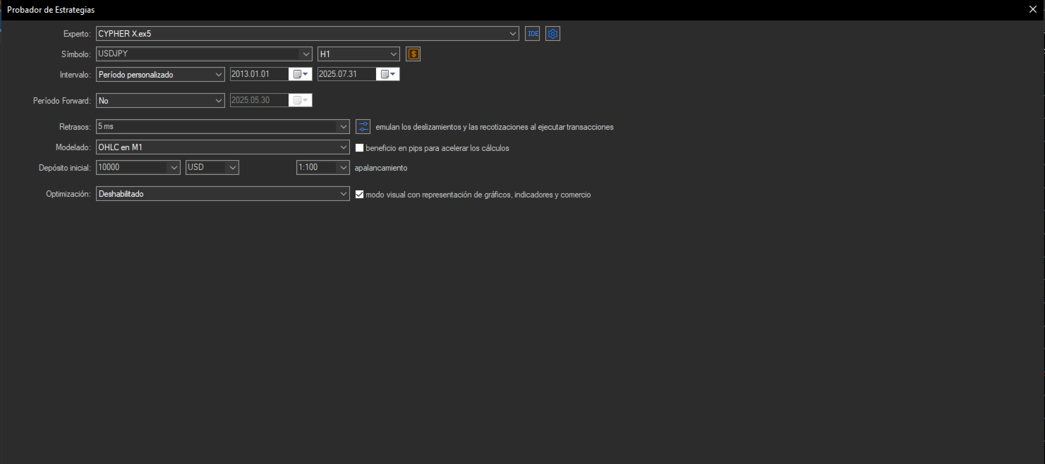 This bot is designed to trade the USDJPY pair on the 1-hour timeframe. It uses a combination of technical indicators to automatically execute entries and exits, always placing a stop loss and take profit.