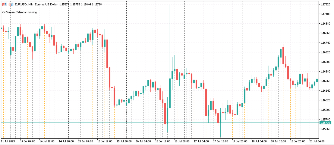 Because the indicator relies on MetaTrader’s built‑in calendar, news from other sources may not appear. Still, by keeping these key events in view, the On‑Screen Calendar can help you capture more high‑quality trades.