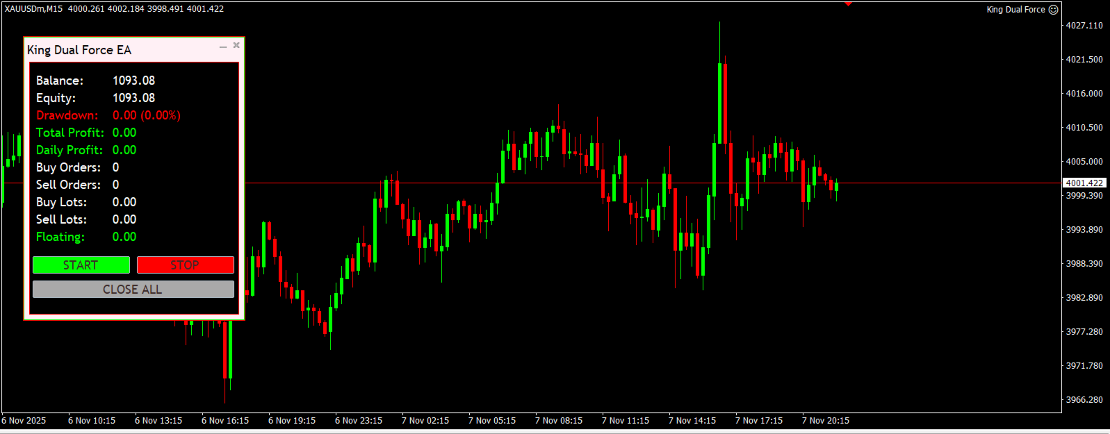 With its advanced hedge logic, adaptive trend-riding capability, and a highly practical interface, King Dual Force brings both power and elegance to automated trading a true partner for traders seeking steady, controlled growth with professional precision.