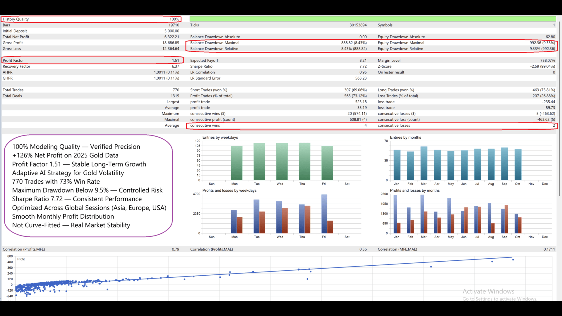 Instead, this system is designed for healthy, reproducible behavior: what you see in backtest is aligned with how the logic works live. Expect intelligent trading, scaling risk,