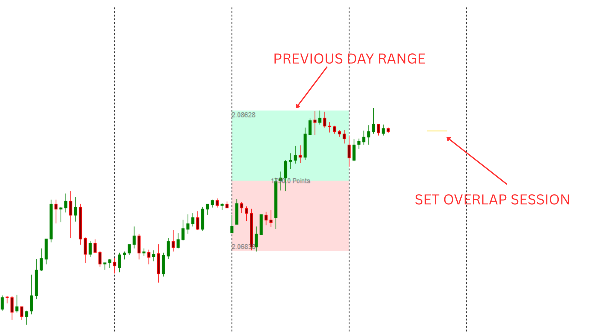Wait for the Signal: The indicator will first wait for the London/New York overlap session to establish a range. It will then monitor for a breakout of that specific session's range.