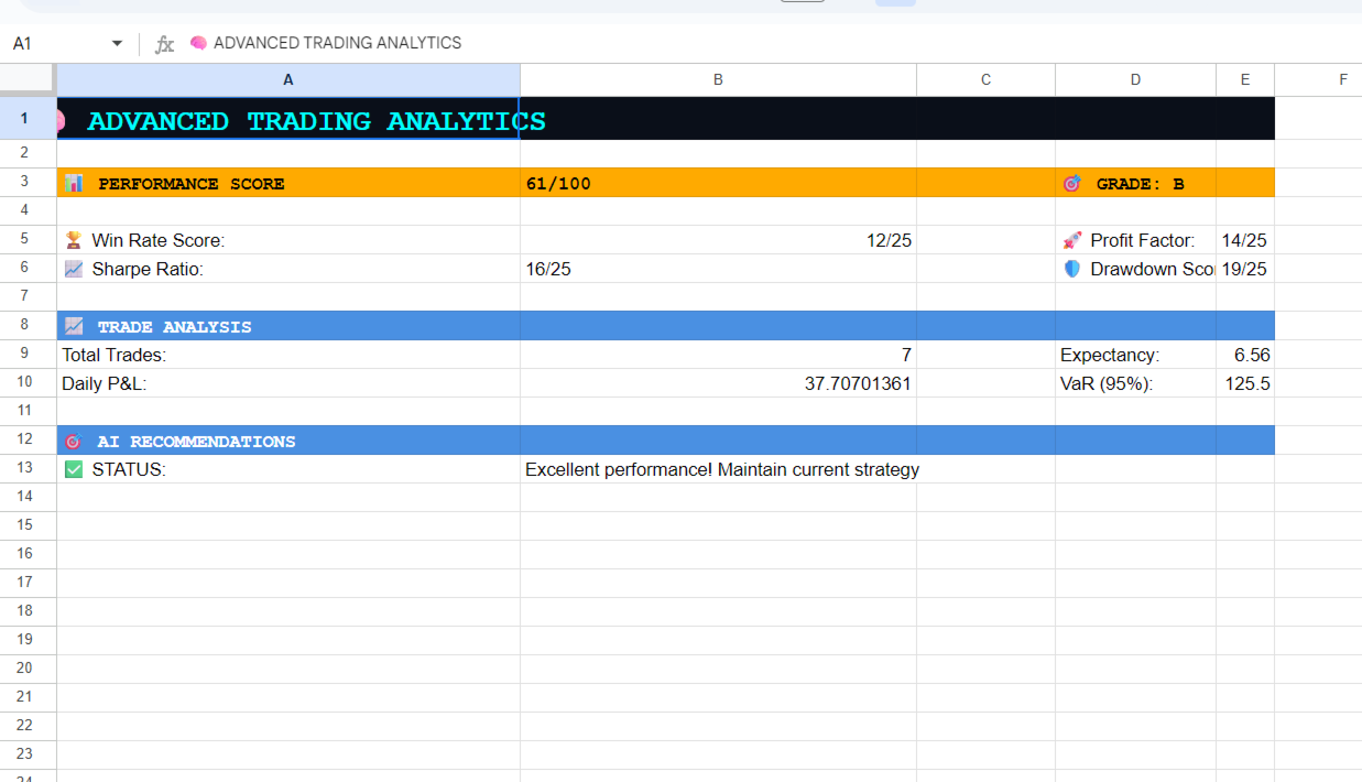 Why This Matters: Professional traders rely on visual analytics to make informed decisions. These charts automatically update with each trade, providing institutional-level analysis without manual work.