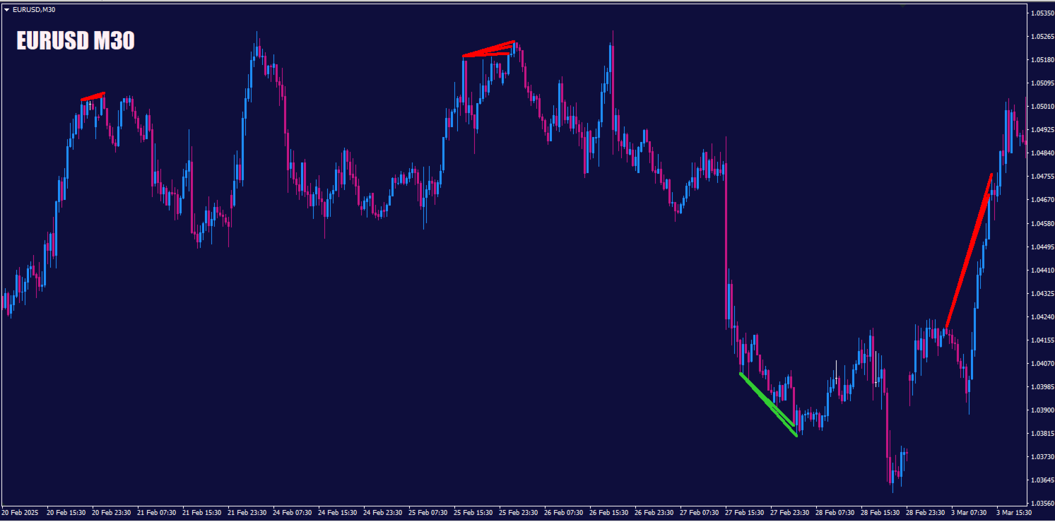 Look for a Bearish Signal (Red Line): When a red line appears connecting two ascending highs on your chart, it's a potential sell signal. It indicates that the current uptrend is weakening. Traders might see this as an opportunity to look for an entry to go short or to exit an existing long position.