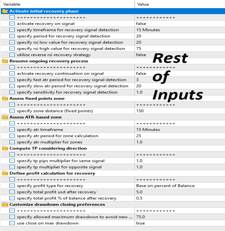 La configurazione è veloce e semplice: basta applicare l'EA al grafico e al timeframe raccomandati. Si gestirà autonomamente altre coppie e gestirà tutta la logica in modo autonomo.