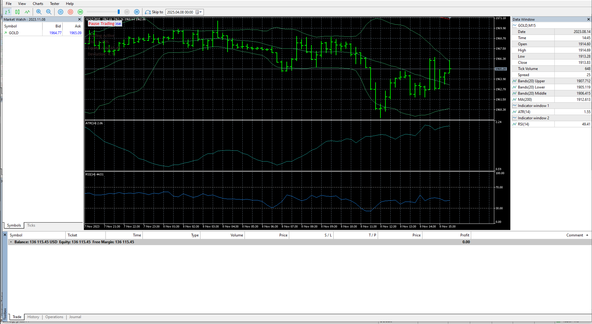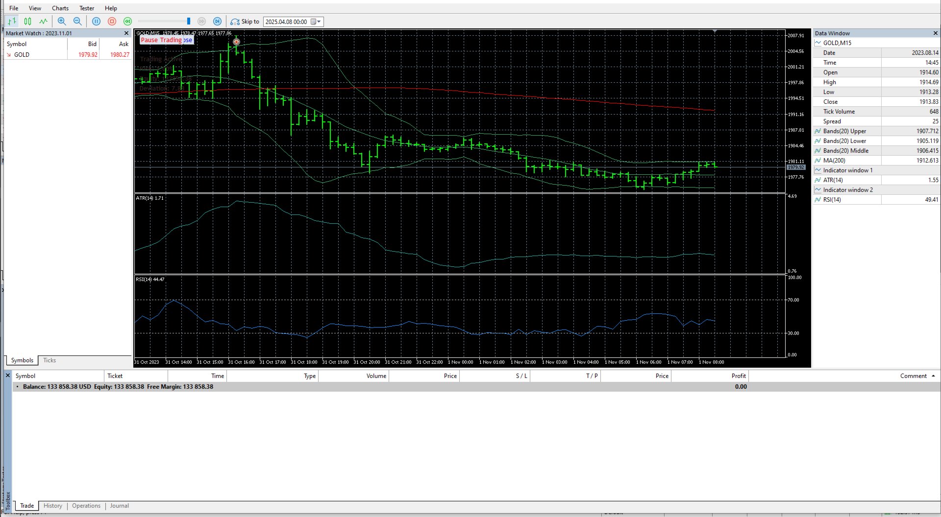 Smart Filters – RSI, ATR, Bollinger Bands, volatility regimes, and session controls.