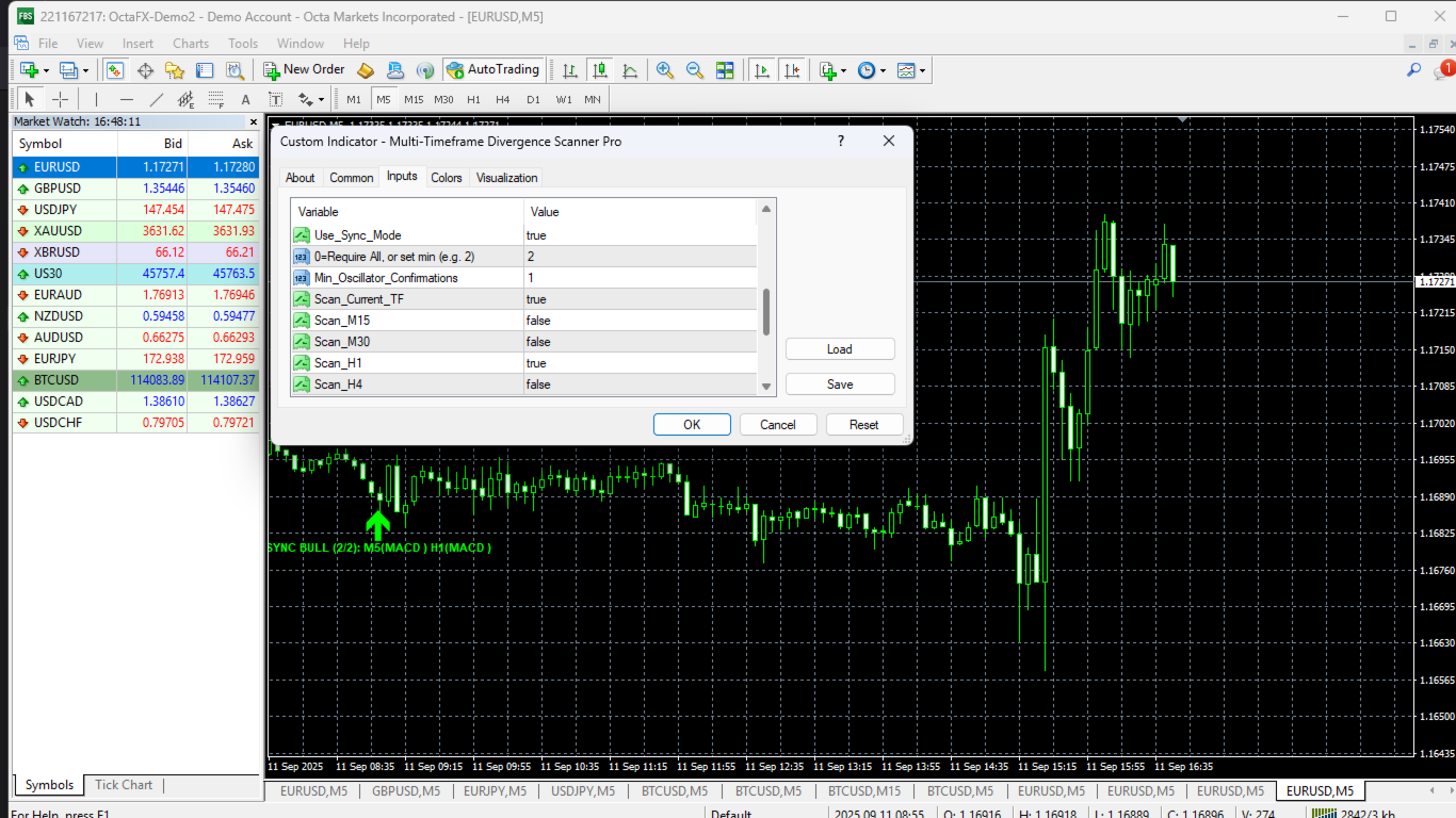 - Start with Use_Sync_Mode = true and Min_Synced_Timeframes = 2 for high-confidence trades.