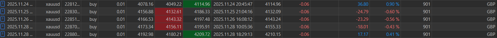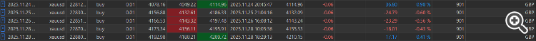 Expert performance on a 1,000 real account (period: 24–28 November 2025). Profit: 8.88$ — Growth: 0.9%.
