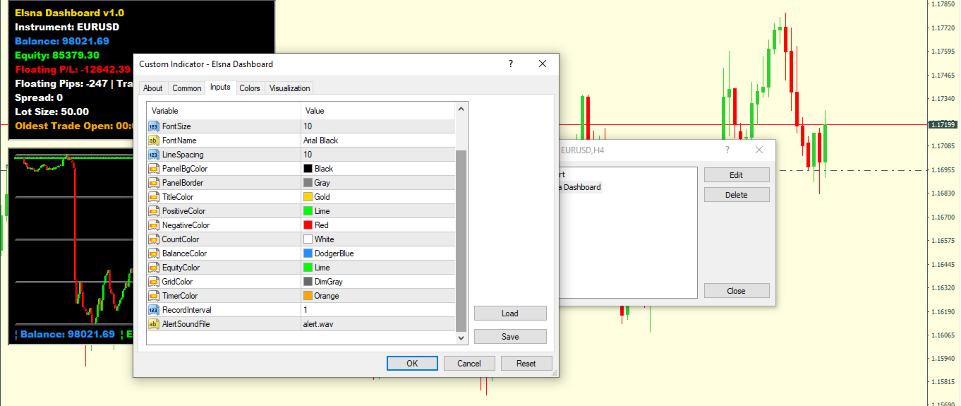 This is an **MT4 Indicator called “Elsna Dashboard”**, designed as a **monitoring dashboard**. Its main functions are: